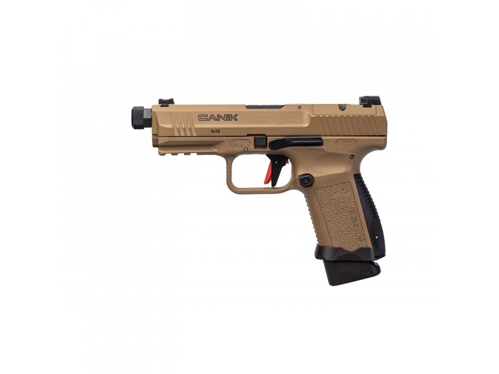 Pištoľ Canik TP9 Elite Combat FDE (Flat Dark Earth) so závitom predstavuje všestranný, stredne veľký (compact) model zo série TP v kalibri 9x19mm a tvorí nekompromisný model, ktorý je oficiálne zaradený v IPSC do divízie Production, navyše je vybavený tými najlepšími komponentami od americkej spoločnosti SAI (Salient Arms International), ako sú športové mieridlá so svetlovodným vláknom a taktickým profilom, magwell či profilovaná, nitridovaná hlaveň so závitom M13,5x1 LH.