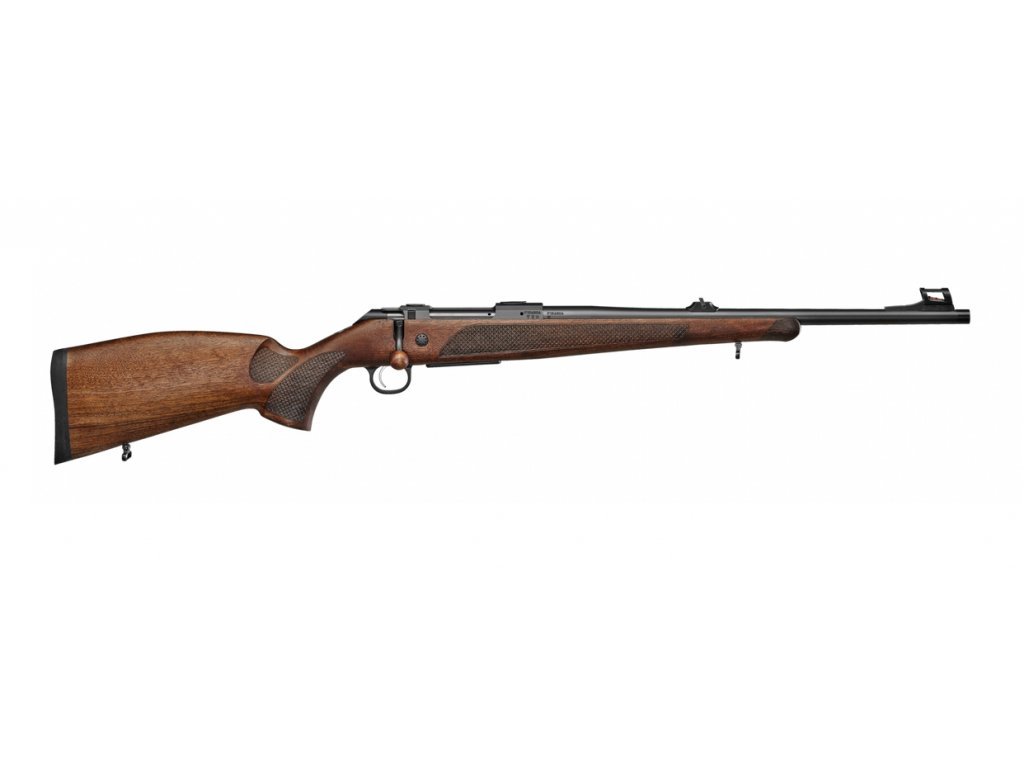Najnovšia podoba klasickej loveckej guľovnice CZ. Pažba s tradičným európskym dizajnom je vyrábaná z výberového orecha a opatrená ľavostrannou lícnicou s ozdobným nosom z tmavo hnedého laminovaného dreva. Zdrsnenie úchopových plôch zaručuje komfortné a spoľahlivé ovládanie. Z orecha je tiež gulička kľučky záveru. Toto prevedenie je k dispozícii v piatich najobľúbenejších loveckých kalibroch od 223 Rem. po 300 WM. Za studena kovaná hlaveň je za studena kovaná a na ústí ma závit s krytkou. Nesie mechanické mieridlá s priehľadovým cieľnikom a muškou zvýraznenou svetlovodnými vláknami. Oceľové lôžko je prispôsobené na montáž optiky pomocou prípojného rozhrania typu Remington 700.